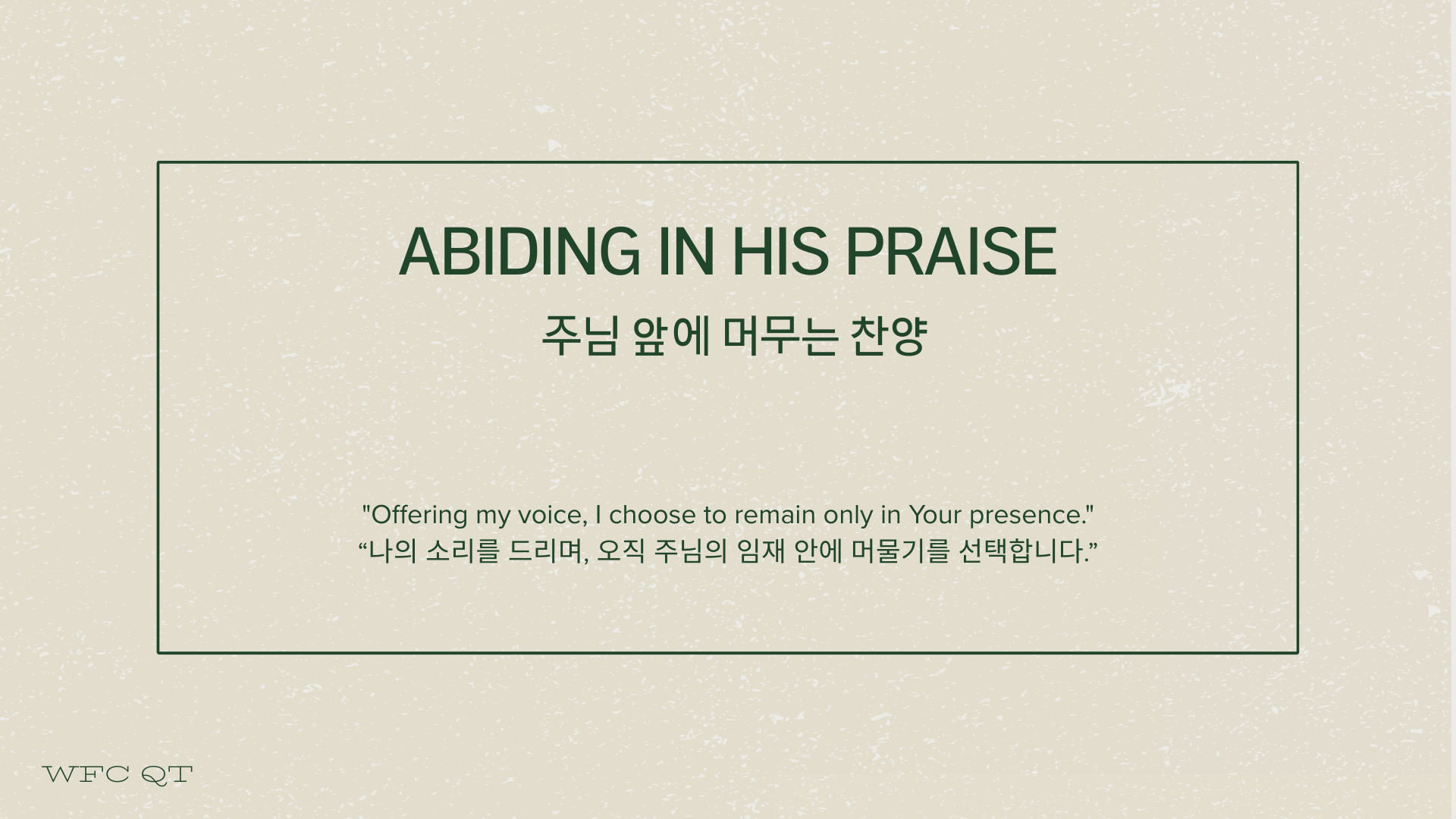 ”Lord, I present my praise to You today. As I offer my voice, let my heart remain fixed on Your presence through this daily worship.”